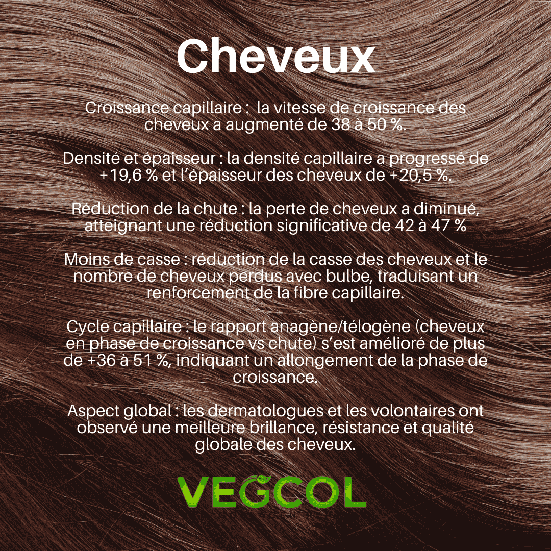 Boostez votre capital capillaire avec la science VEGCOL®. L'étude clinique (2024) démontre une action radicale sur la pousse et la densité en seulement 60 jours.